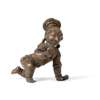 Shri Devi, cast, standing in the tribhanga pose on a stepped lotus base, in her left hand she holds a closed lotus flower while the left arm and hand is facing downwards, adorned with jewellery, and; Balakrishna cast as the infant Krishna crawling and holding a ball of butter, wearing multiple pieces of jewellery on his wrists, ankles, waist, and around his neck, and a tall flared headdress