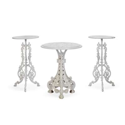 VICTORIAN PAINTED CAST IRON TABLE AND PAIR OF STANDS