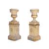 PAIR OF FIRE CLAY URNS AND PEDESTALS