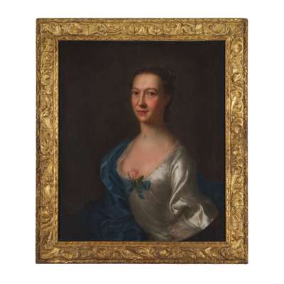 HALF LENGTH PORTRAIT OF A LADY IN BLUE AND WHITE