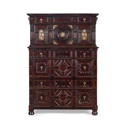 CHARLES II OAK, MOTHER-OF-PEARL AND BONE INLAID THREE-PART CHEST OF DRAWERS