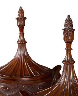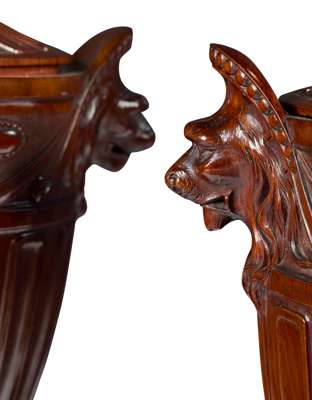 PAIR OF GEORGE III STYLE LARGE CARVED MAHOGANY URNS