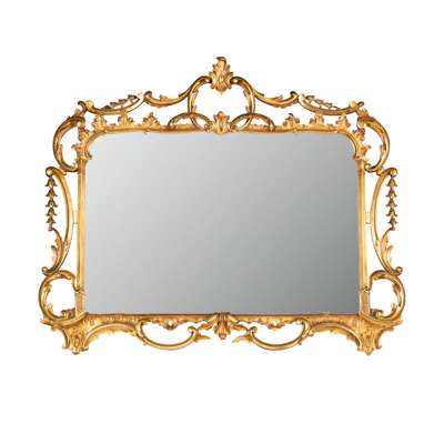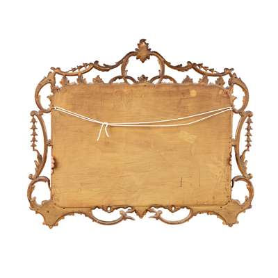 the shaped rectangular mirror plate in a pierced frame carved with acanthus scrolls, rocaille, and harebell trails
