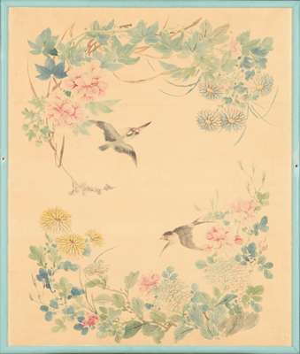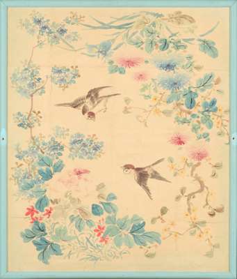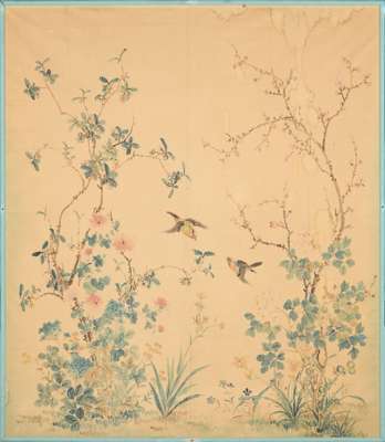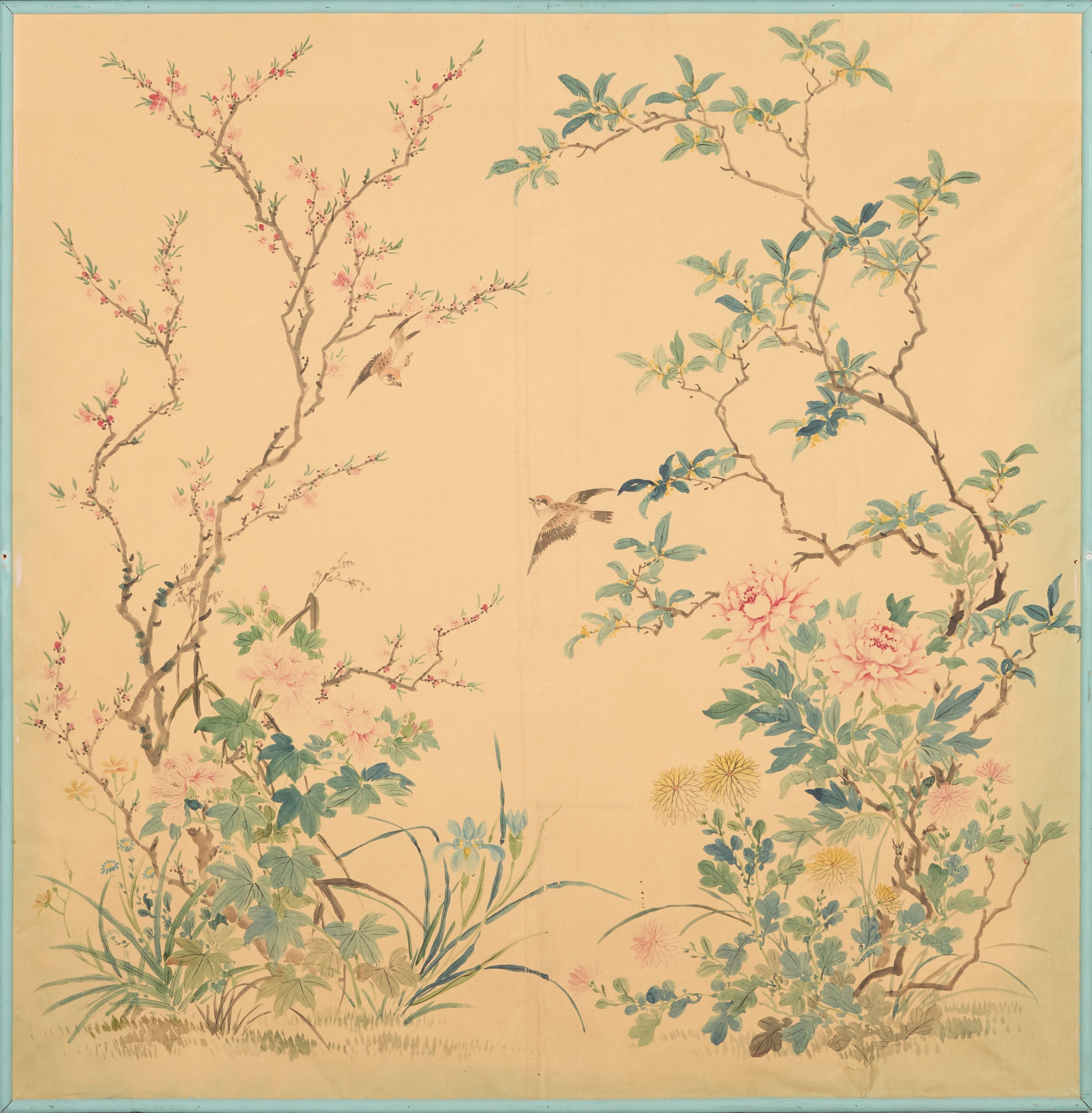 GROUP OF FRAMED CHINESE PAINTED WALLPAPER PANELS