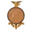 the circular plate in a reeded ebonised slip and deep moulded frame with lotus clasped borders, surmounted by a carved eagle finial with a shell and acanthus leaf pendent finial