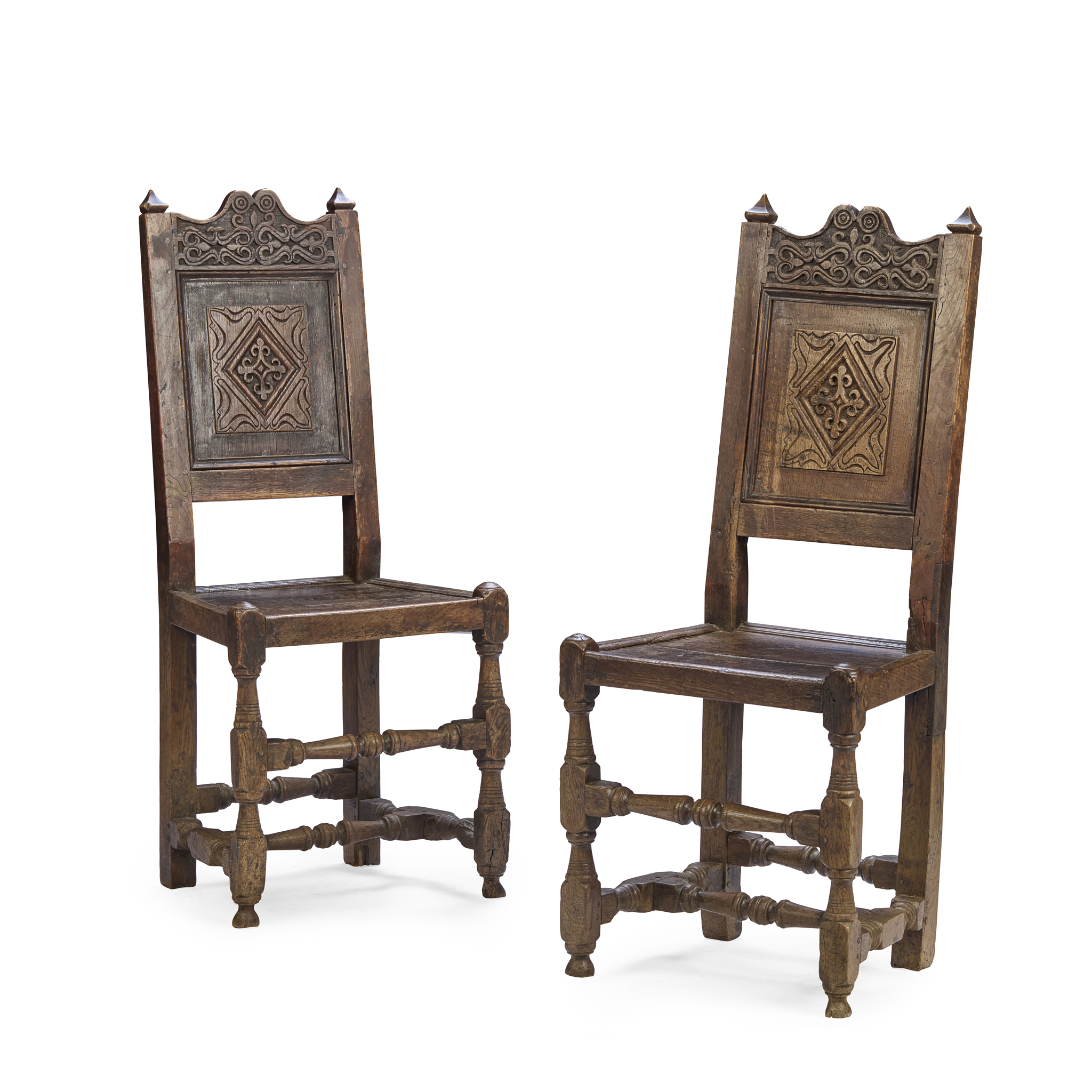 PAIR OF CARVED OAK SIDE CHAIRS, PROBABLY YORKSHIRE OR NORTH LANCASHIRE