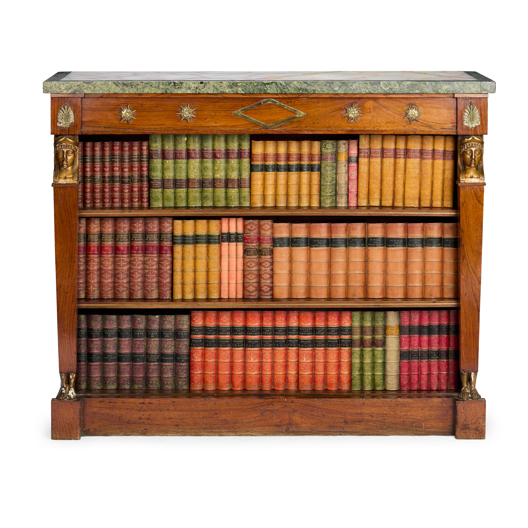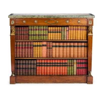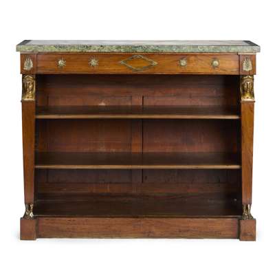 REGENCY STYLE ROSEWOOD, ONYX AND MARBLE TOPPED OPEN BOOKCASE Y