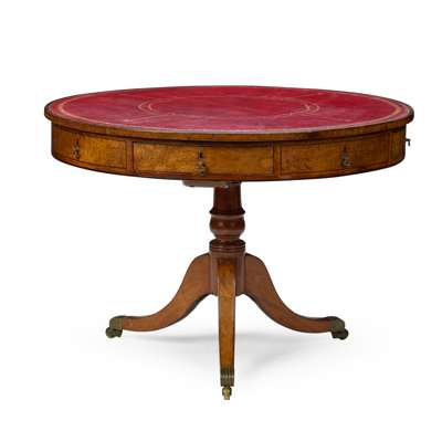 REGENCY STYLE MAHOGANY AND EBONISED DRUM TABLE