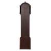 the signed 13 inch circular cream enamel dial with Roman numerals, the centre with subsidiary seconds and date dials, the break arch case with moulded cornice, the sides with small quatrefoil sound frets, the trunk with a plain arched door flanked by fluted Doric quarter columns, on a square plinth base, with a twin train weight driven movement striking to a bell