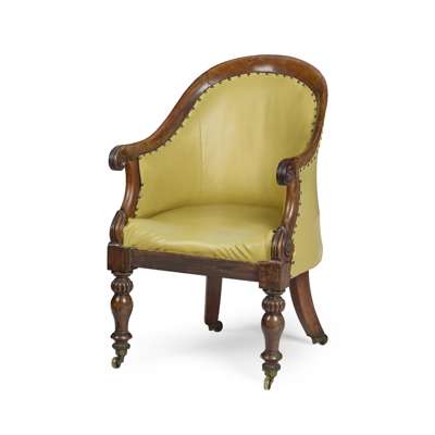 REGENCY MAHOGANY UPHOLSTERED ARMCHAIR
