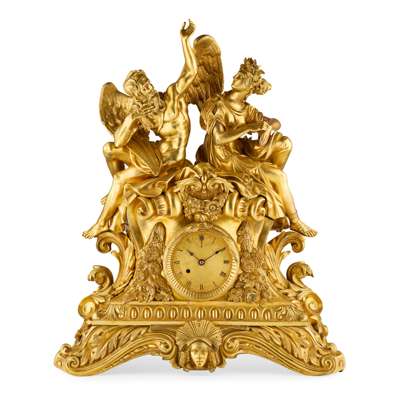LARGE GEORGE IV GILT BRONZE FIGURAL MANTEL CLOCK, ARNOLD & DENT, LONDON, NO.524