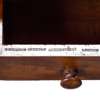 the rectangular top with a moulded edge, the skiver lacking, above three short frieze drawers, raised on banks of three drawers, on plinth bases, the drawer stamped ‘T WILLSON QUEEN STREET’
