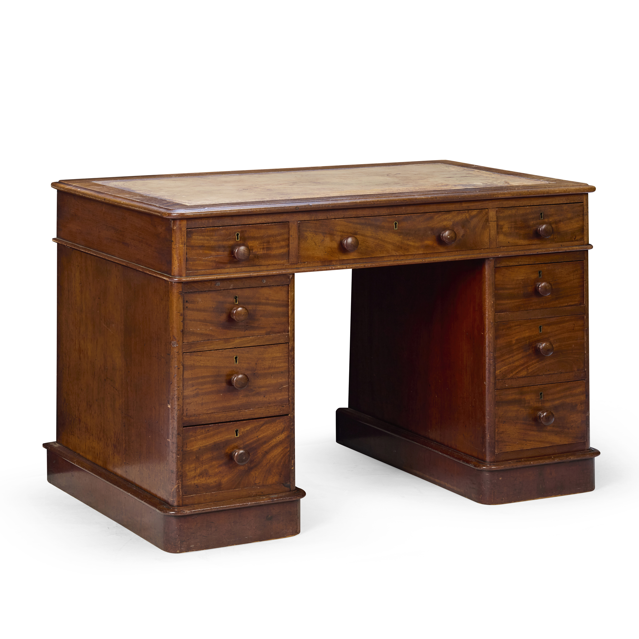 EARLY VICTORIAN SMALL MAHOGANY PEDESTAL DESK, BY T. WILLSON, LONDON