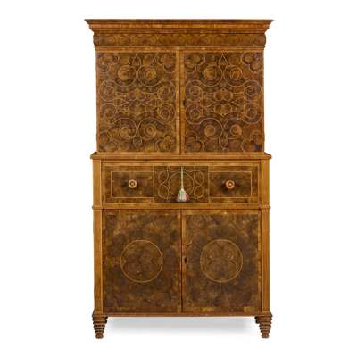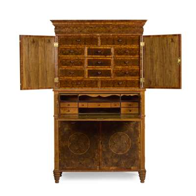 QUEEN ANNE OYSTER VENEERED WALNUT AND LABURNUM CHEST-ON-CHEST