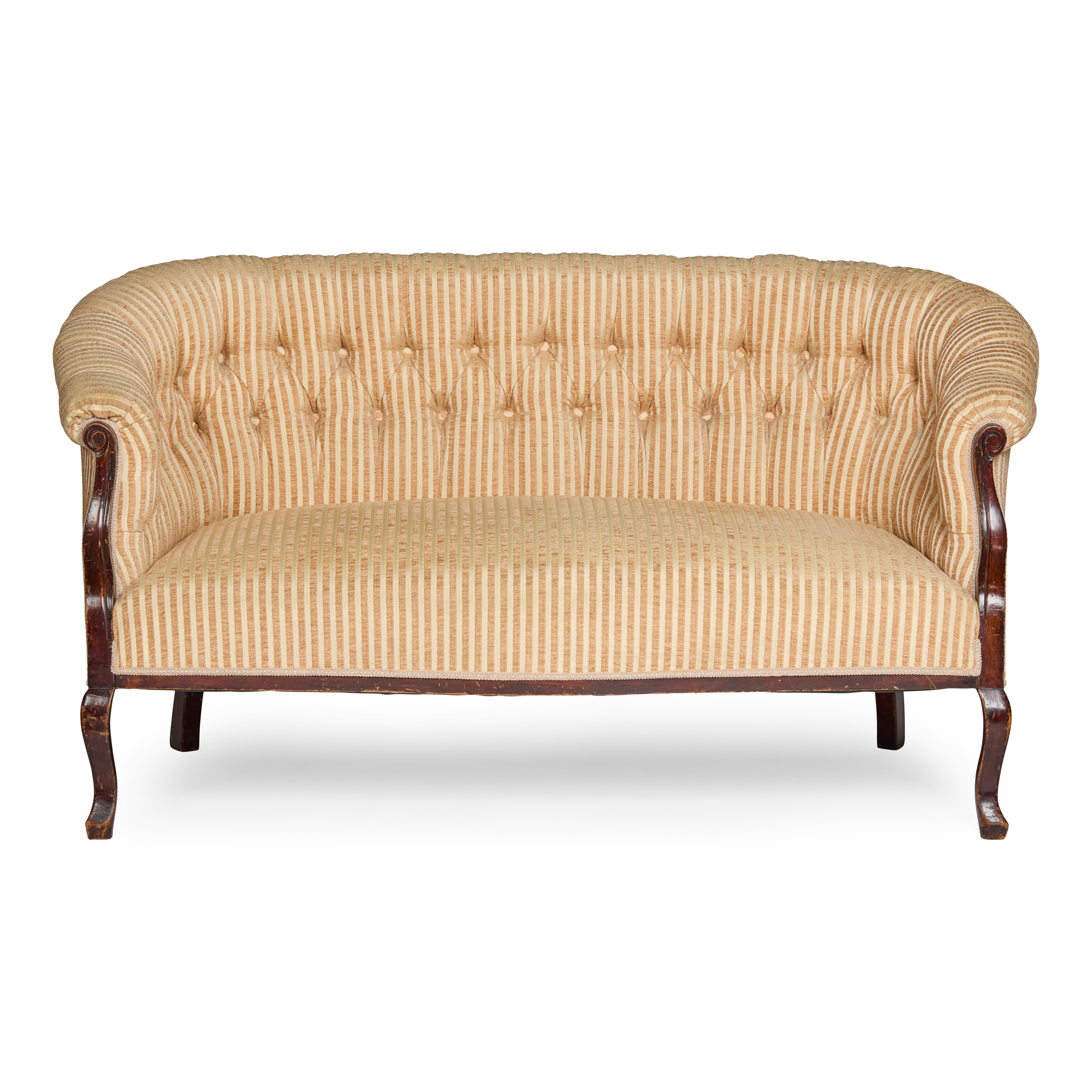 VICTORIAN MAHOGANY BUTTON-UPHOLSTERED SMALL SOFA