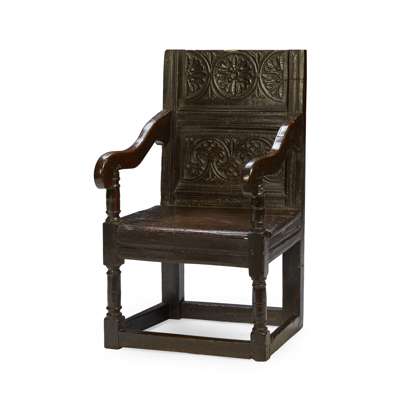 CHARLES I CARVED OAK ARMCHAIR