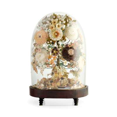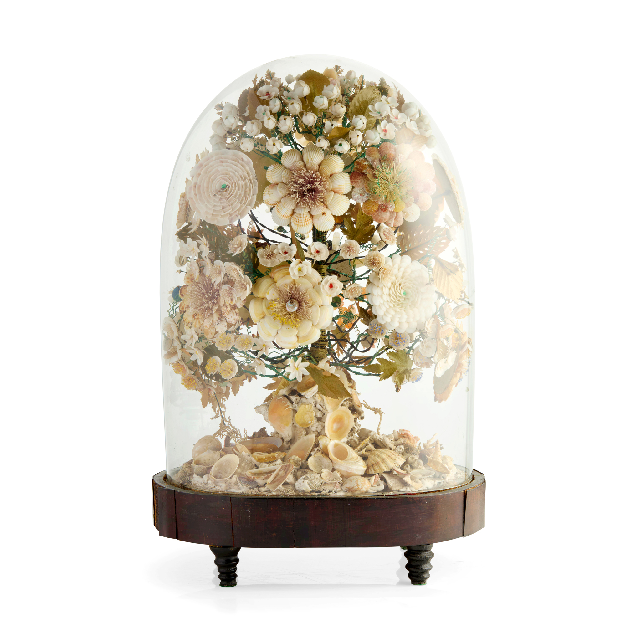 VICTORIAN SHELL-WORK FLOWER DISPLAY IN DOME Y