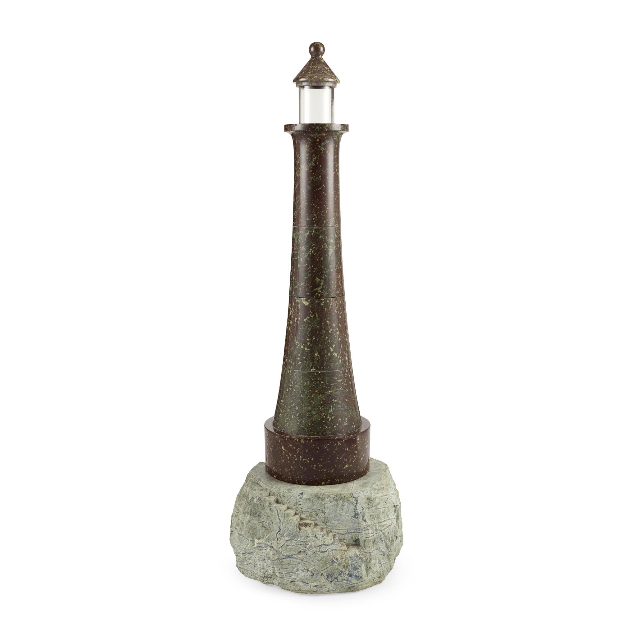 VERY LARGE CORNISH SERPENTINE MODEL OF THE EDDYSTONE LIGHTHOUSE