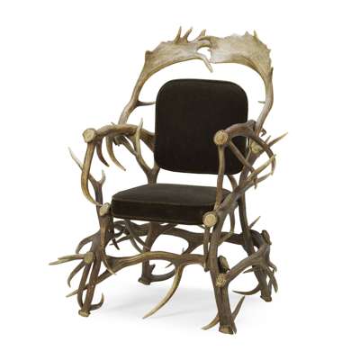 with a padded back and seat, the frame and legs made of stags' horns
