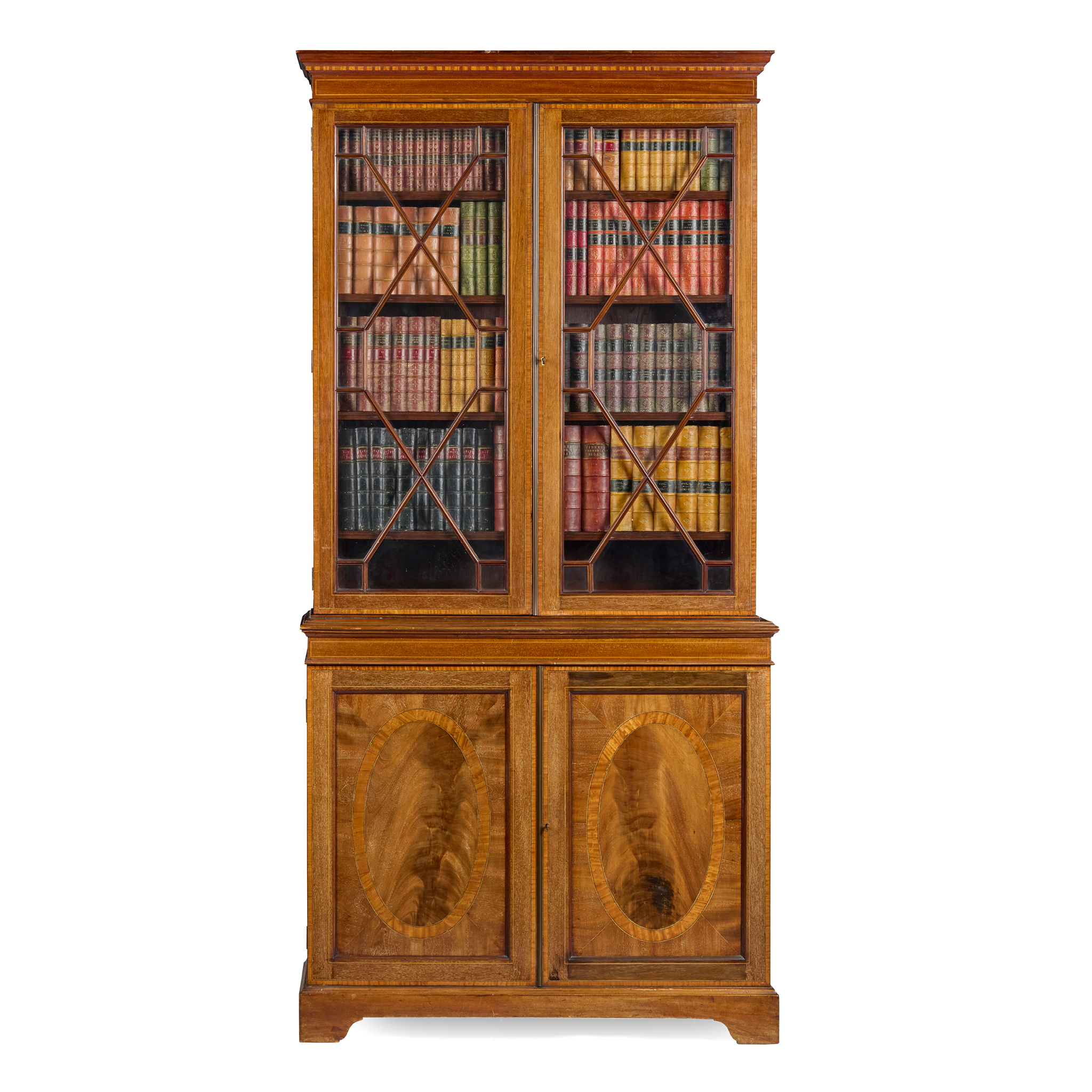 GEORGIAN STYLE MAHOGANY AND SATINWOOD LIBRARY BOOKCASE