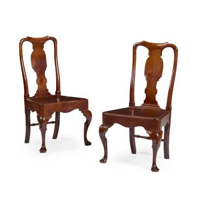 PAIR OF EARLY GEORGE II RED WALNUT SIDE CHAIRS