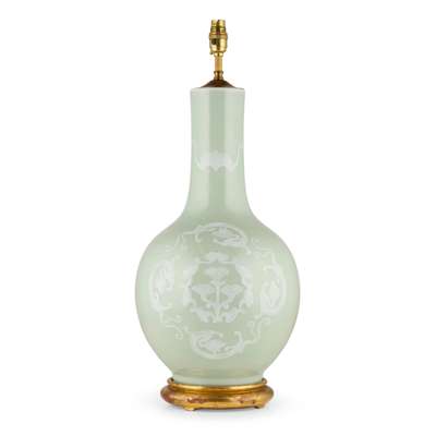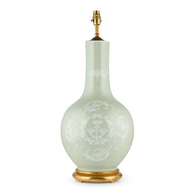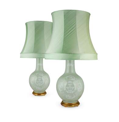 PAIR OF CHINESE CELADON BOTTLE VASES MOUNTED AS LAMPS