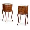 PAIR OF FRENCH WALNUT MARBLE TOPPED BEDSIDE CABINETS