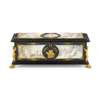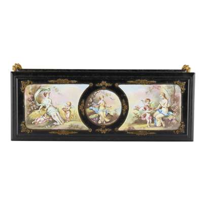 VICTORIAN EBONISED AND GILT METAL MOUNTED BOX WITH PORCELAIN PANELS