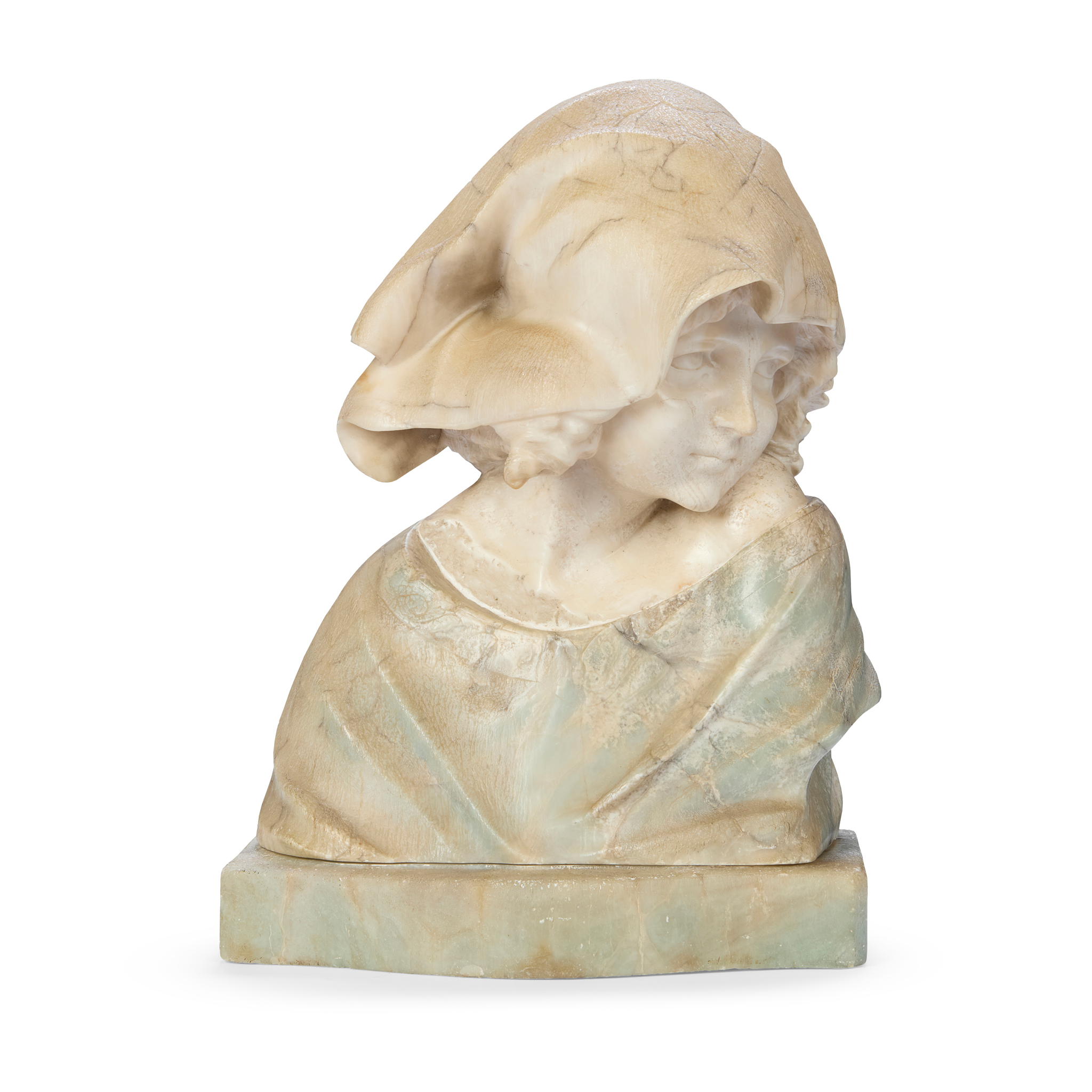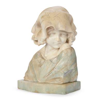 ITALIAN CARVED ALABASTER AND ONYX BUST OF A GIRL