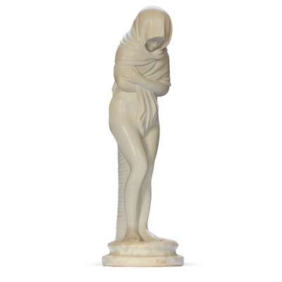 WHITE MARBLE FIGURE, AFTER JEAN-ANTOINE HOUDON
