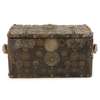ITALIAN PINE, LEATHER, STUDDED AND MEDALLION MOUNTED BOX