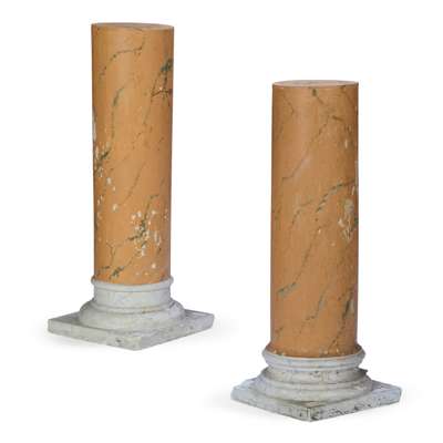 PAIR OF PAINTED PLASTER PEDESTAL COLUMNS