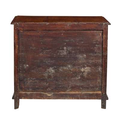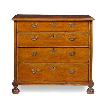 the top with a moulded edge above four long graduated drawers, raised on bun feet
