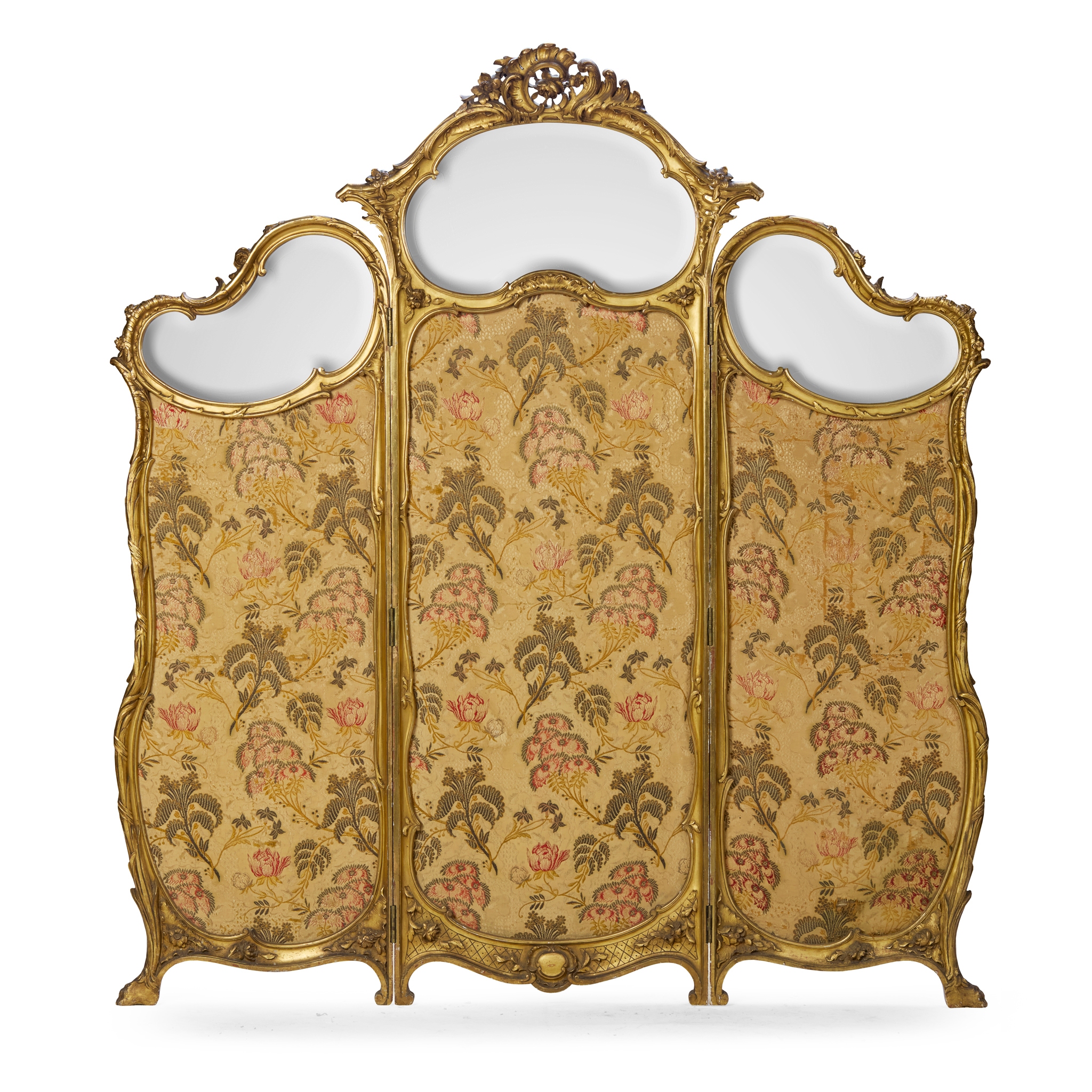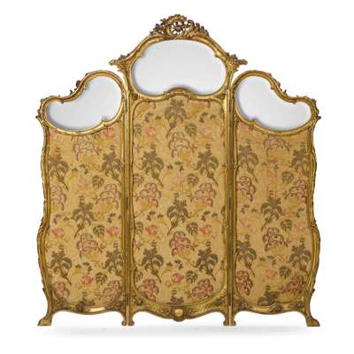 FRENCH GILTWOOD AND MIRRORED THREE PANEL SCREEN