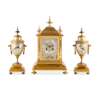 FRENCH GILT BRASS AND PLATINUM-GROUND PARIS PORCELAIN MANTEL CLOCK GARNITURE