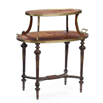 LOUIS XV STYLE KINGWOOD AND MARQUETRY ETAGERE TABLE