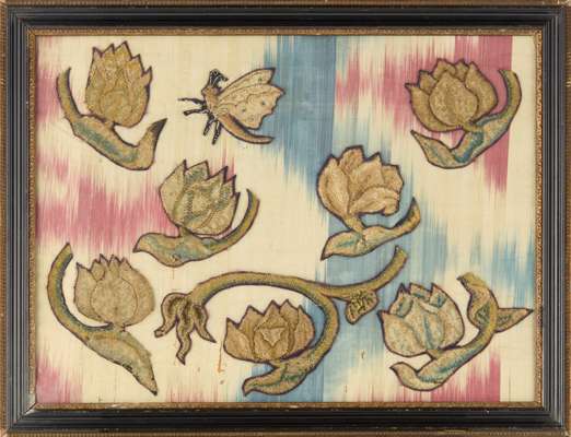 framed embroidered fragments 35cm high, 45cm wide (including frame)