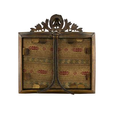 painted on a sheet of celluloid, signed ‘DICK’, within a decorative metal frame with anthemion motifs and an eagle, ribbon and laurel crest, with an easel support to the reserve