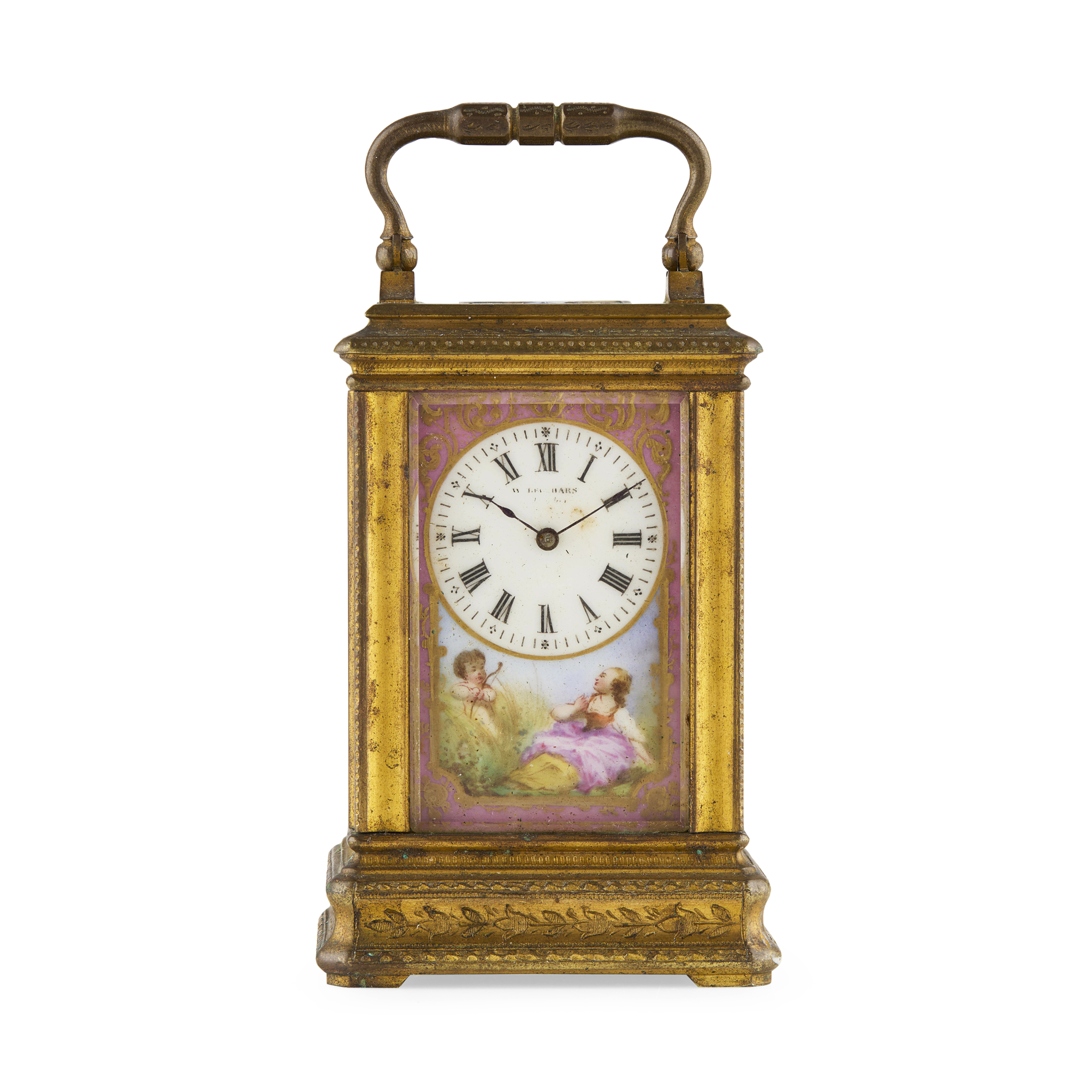 FRENCH GILT BRASS AND PORCELAIN MINIATURE CARRIAGE CLOCK, DROCOURT, PARIS