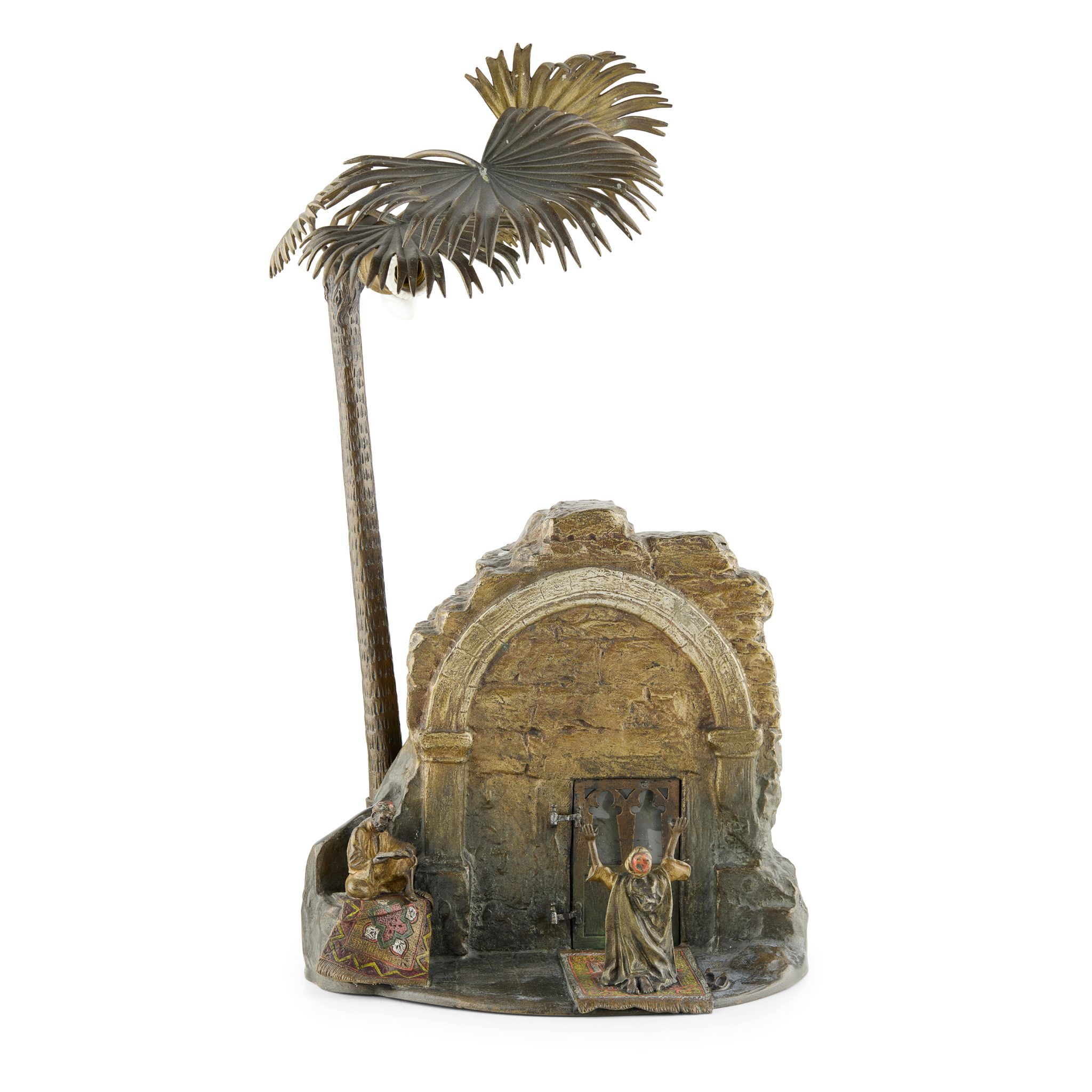 AUSTRIAN COLD PAINTED BRONZE FIGURAL LAMP, AFTER A MODEL BY FRANZ XAVER BERGMAN (1861-1936)