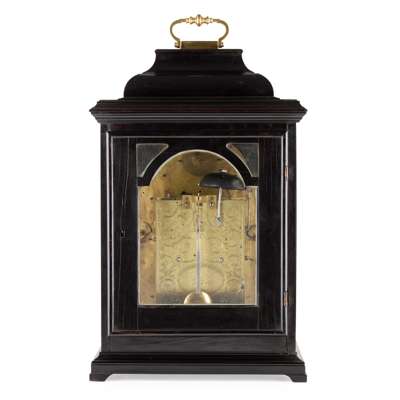 GEORGE II EBONY AND EBONISED BRACKET CLOCK WITH PENNY MOON, JOHN MITCHELL, LONDON