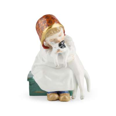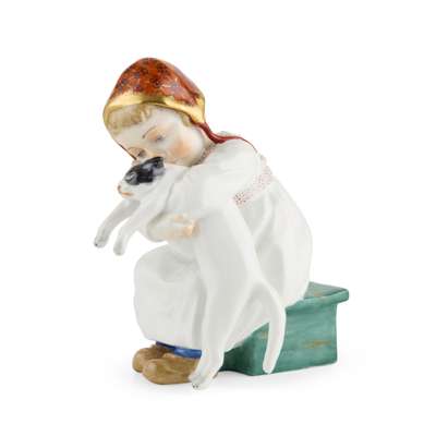 MEISSEN PORCELAIN FIGURE OF A GIRL HOLDING A KITTEN