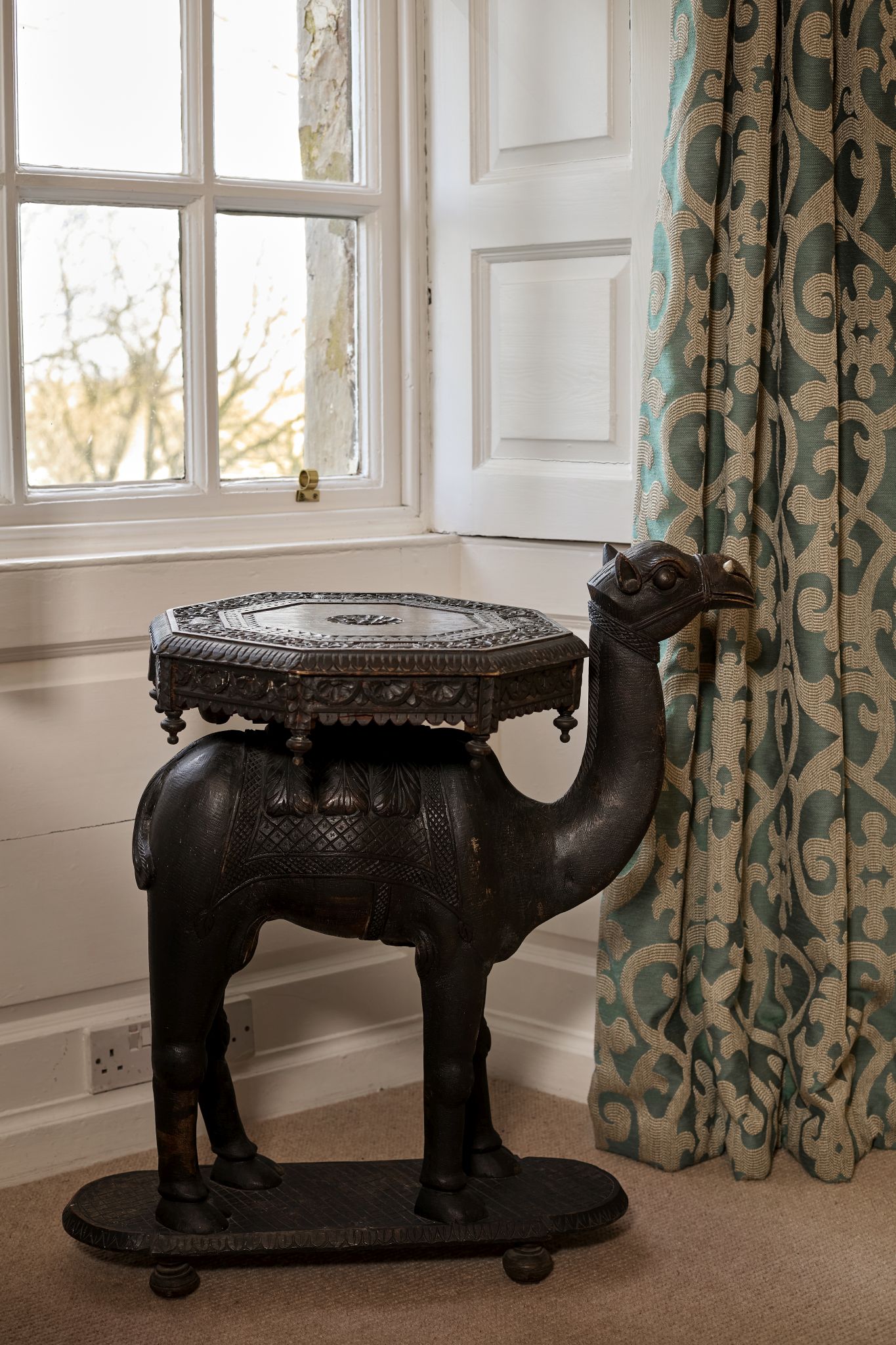 INDIAN CARVED HARDWOOD OCCASIONAL TABLE IN THE FORM OF A CAMEL