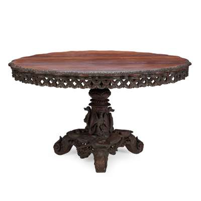 ANGLO-INDIAN CARVED PADOUK CENTRE TABLE