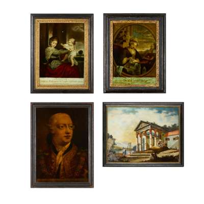 GROUP OF FOUR GEORGIAN REVERSE GLASS PRINTS