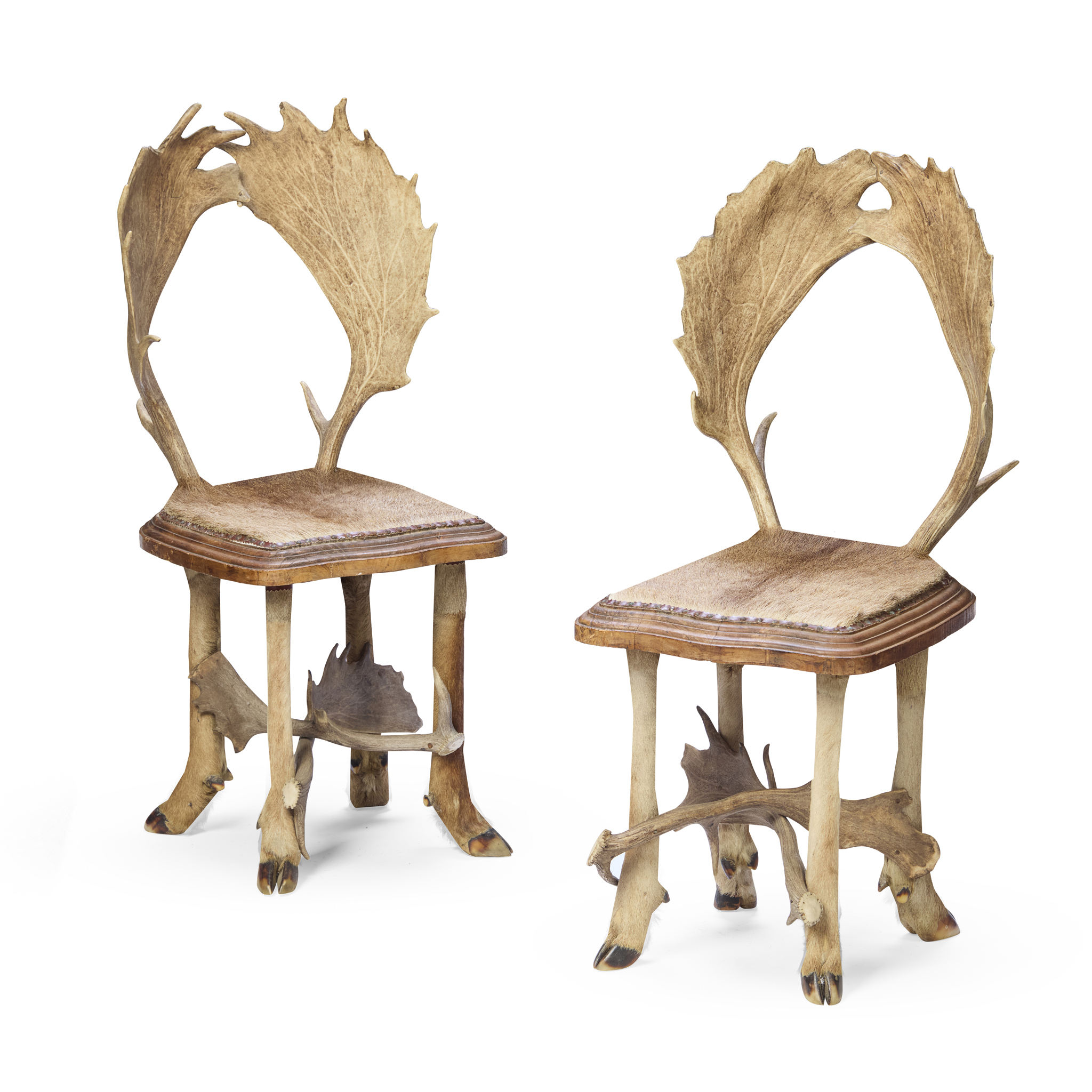 PAIR OF BLACK FOREST TAXIDERMY HALL CHAIRS