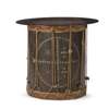 the sides painted in blue and red with the motto RULE BRITANNIA and brass studs; together with a circular glass plate to use as a table