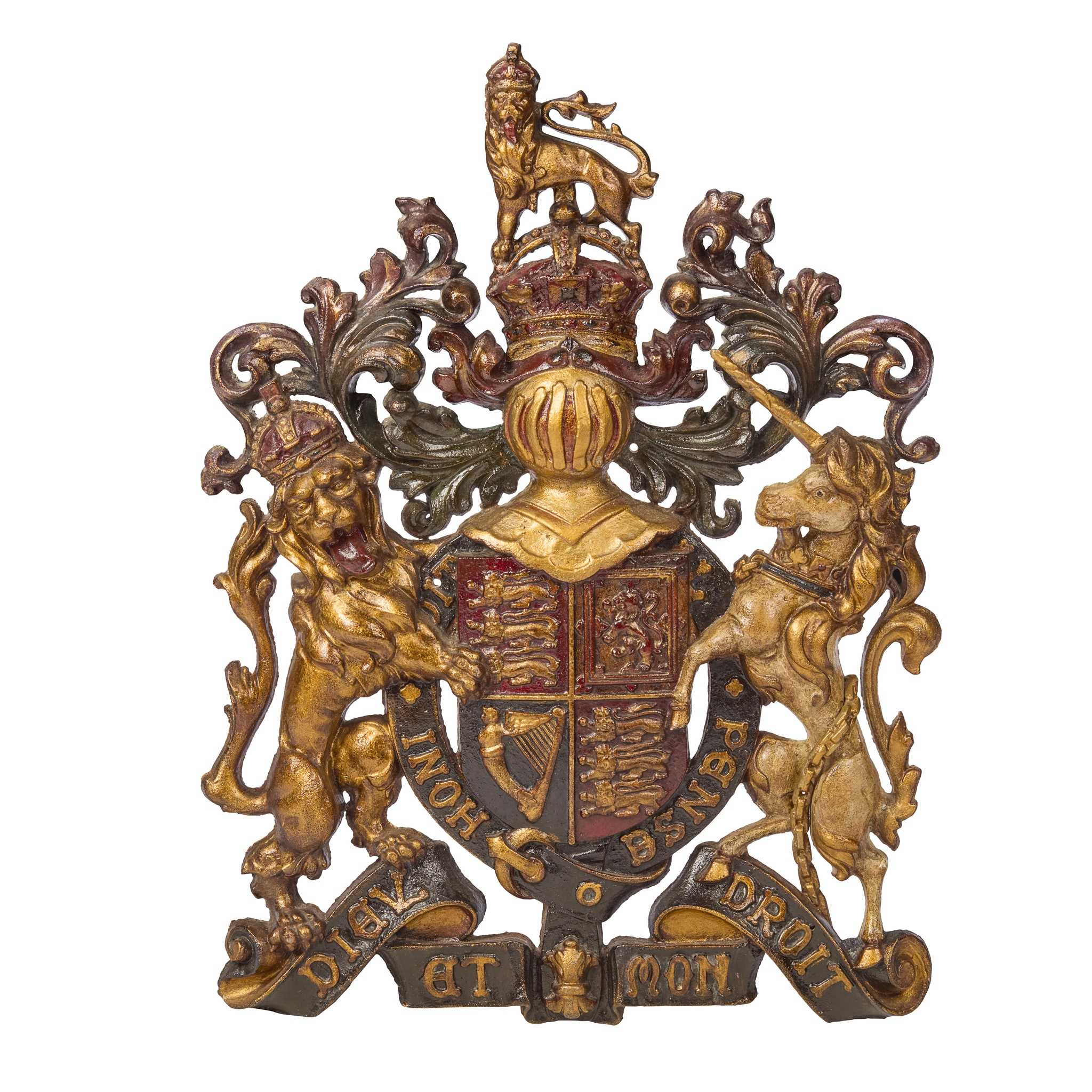 EDWARDIAN PAINTED CAST IRON ROYAL COAT OF ARMS
