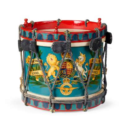 painted with a coat of arms and No. 2 FLIGHT TRAINING SCHOOL/ ROYAL AIR FORCE, signed HENRY POTTER & CO. (DRUMS) LTD., 36/38 West St. Charing X Rd. LONDON and stamped in the brass
