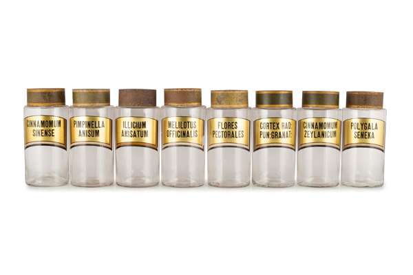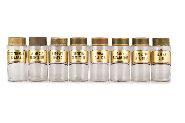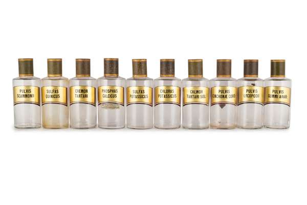 LARGE COLLECTION OF FRENCH CLEAR GLASS APOTHECARY JARS